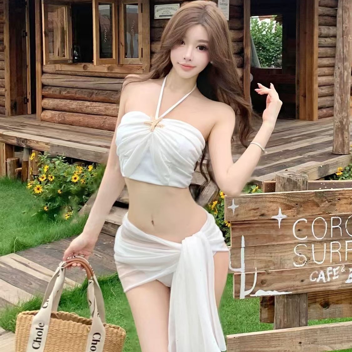 泳衣女新款网红风纯欲性感显瘦比基尼三件套bikini仙女度假泳装