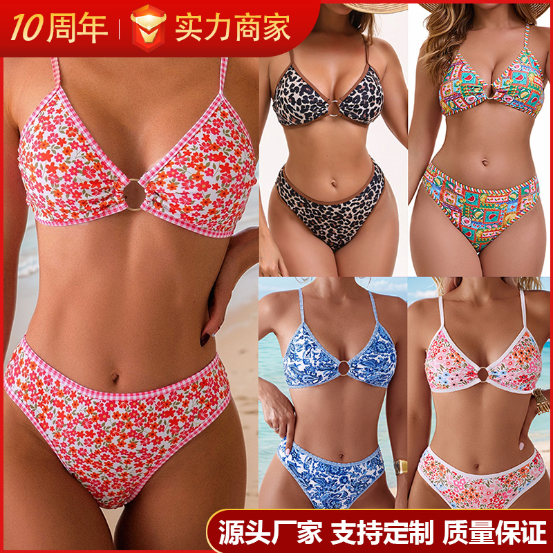 2024 Model Baru Bikini Border Eropa dan Amerika Perdagangan Luar Negeri Kecil Bertabur Bunga Segitiga Seksi Pakaian Renang Wanita