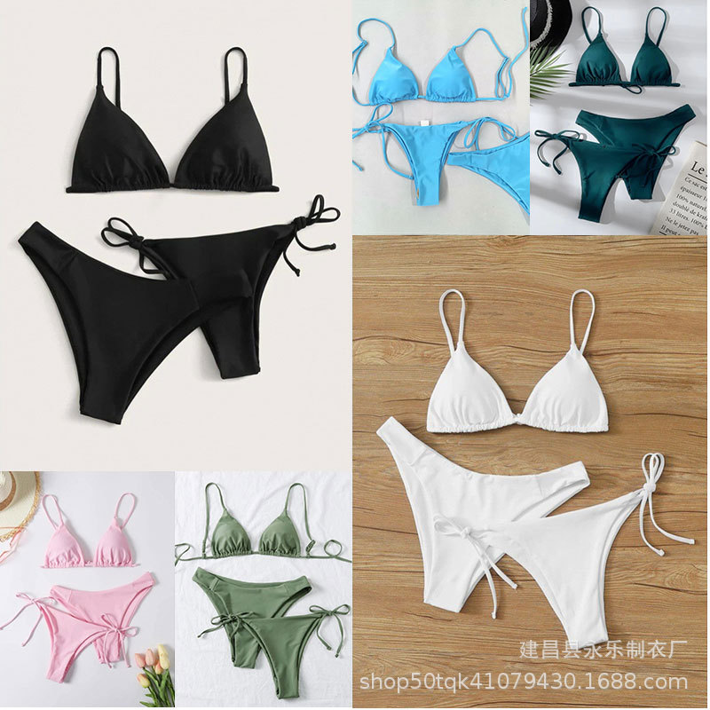Yilin baju renang wanita Eropa dan Amerika seksi terpisah warna polos bikini baju renang AliExpress populer perdagangan luar negeri