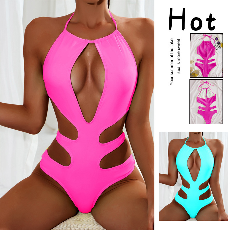 Perdagangan luar negeri AliExpress Amazon warna solid wanita hollow-out split swimsuit bikini seksi LZ207