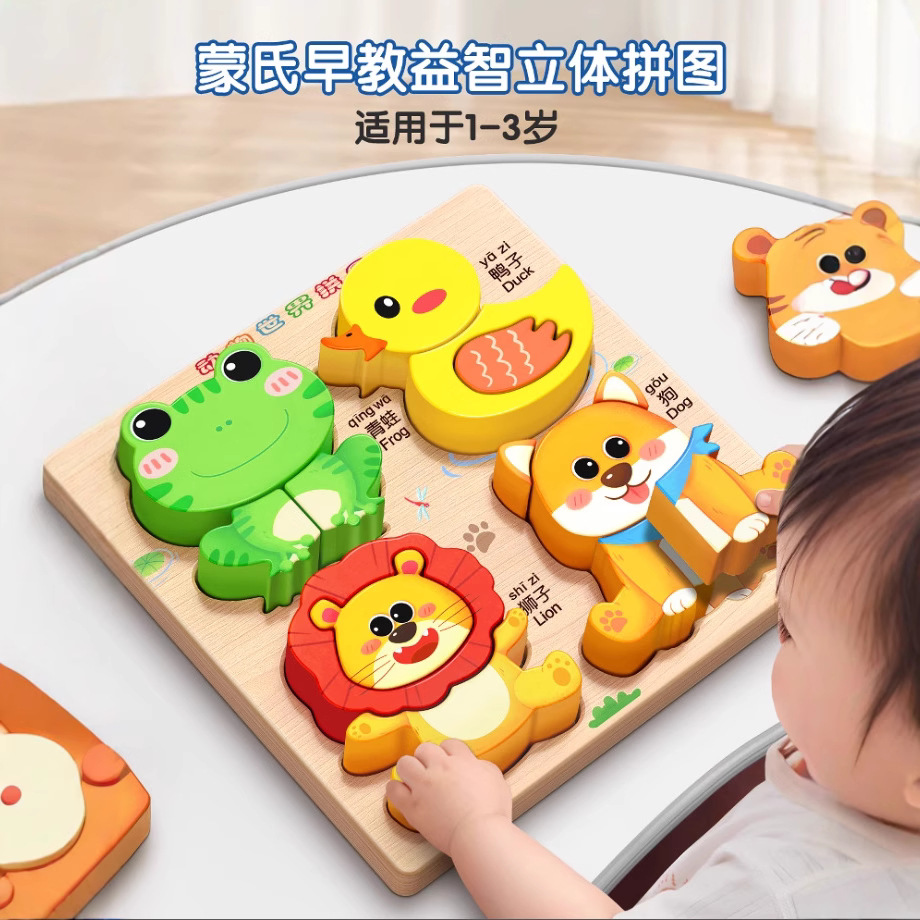 Teka-teki Tiga Dimensi Anak Montblock Teka-teki Pendidikan Anak Usia Dini 0 hingga 3 Tahun Bayi 2 Kayu Balita 1 Hewan 6 Blok Bangunan Mainan