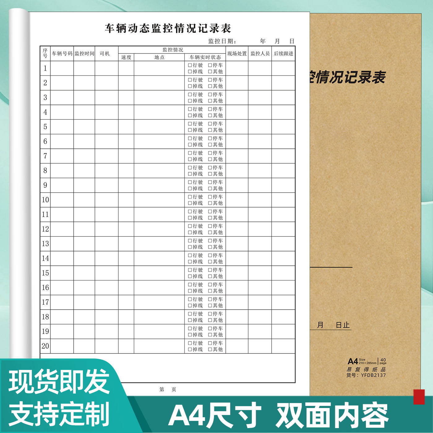 Buku catatan pemantauan dinamis kendaraan A4 lembar catatan status mengemudi kendaraan motor buku pendaftaran pengiriman mobil keluar