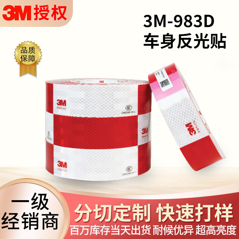 Stiker reflektif badan mobil 3m983D, stiker reflektif 3M kendaraan malam bercahaya logo keselamatan peringatan lebar visual truk