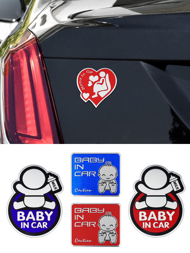 Stiker mobil bayi di dalam mobil, stiker dekorasi mobil logam peringatan kepribadian ibu hamil bayi