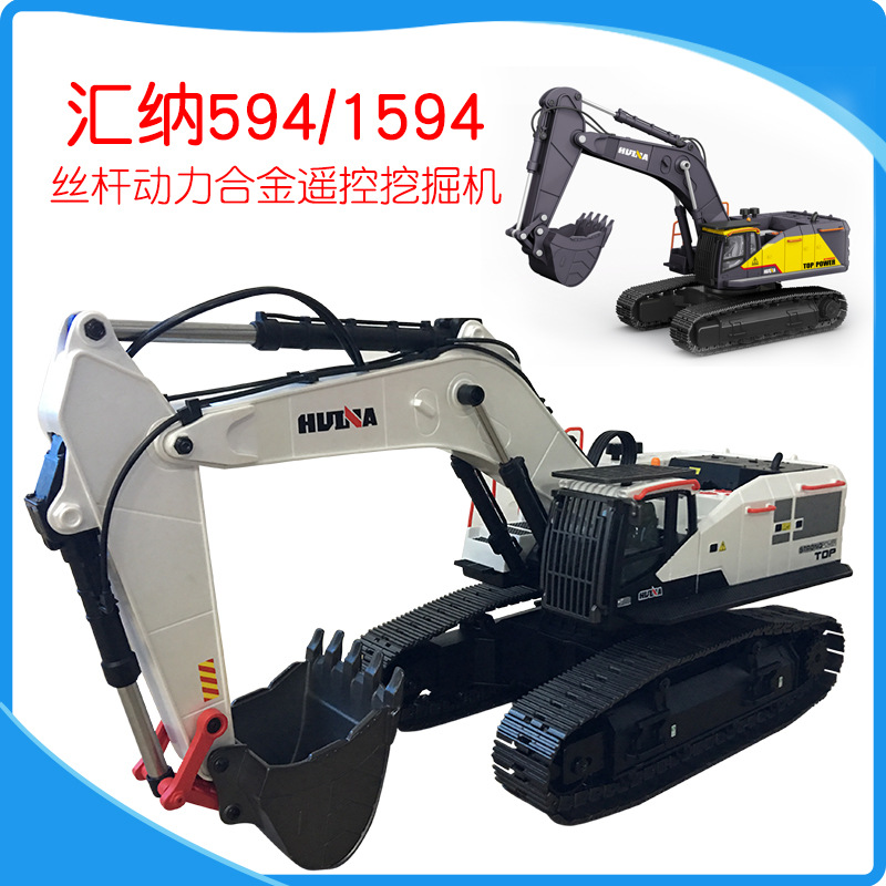 Huina batang sekrup penggali, remote kontrol 594 paduan model daya kendaraan teknik mainan modifikasi ekskavator