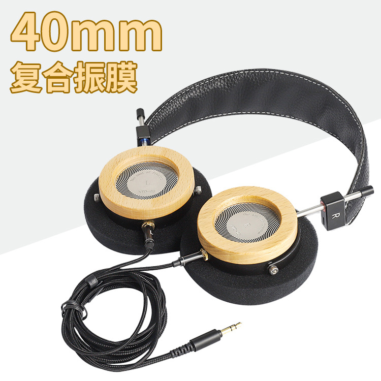 Headset komputer HIFI, headset komputer kabel demam kayu Maple 40mm diafragma komposit