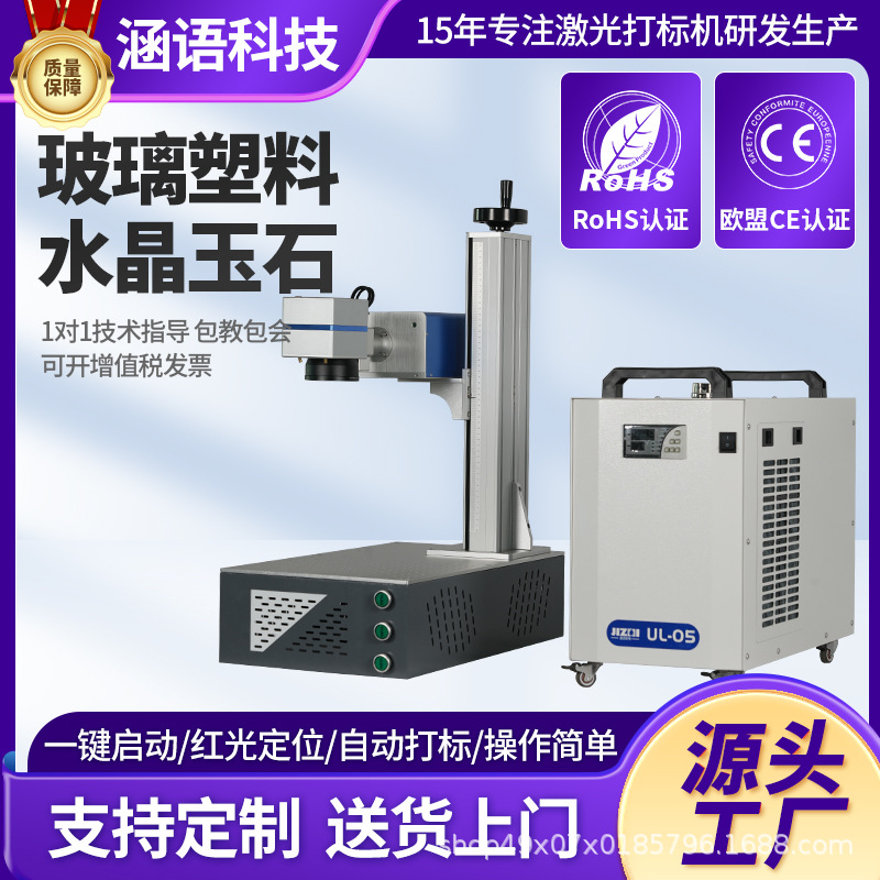 玻璃塑料5瓦紫外线镭雕机玉石水晶激光刻字机文字编号logo打标机
