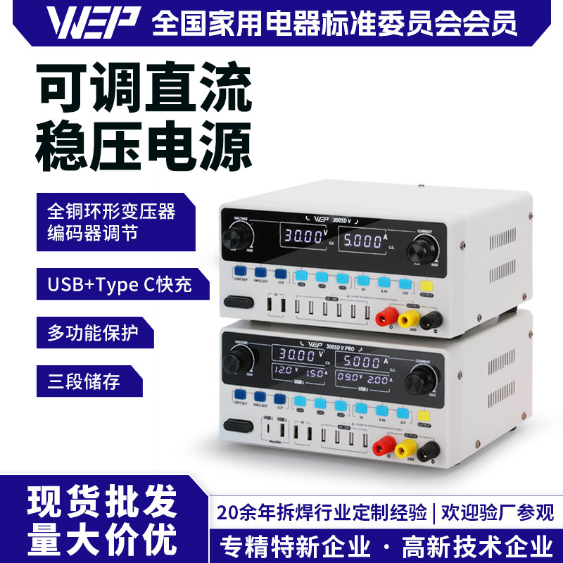 WEP3005DV恒流恒压可调电源手机电脑维修电源30V5A直流稳压电源