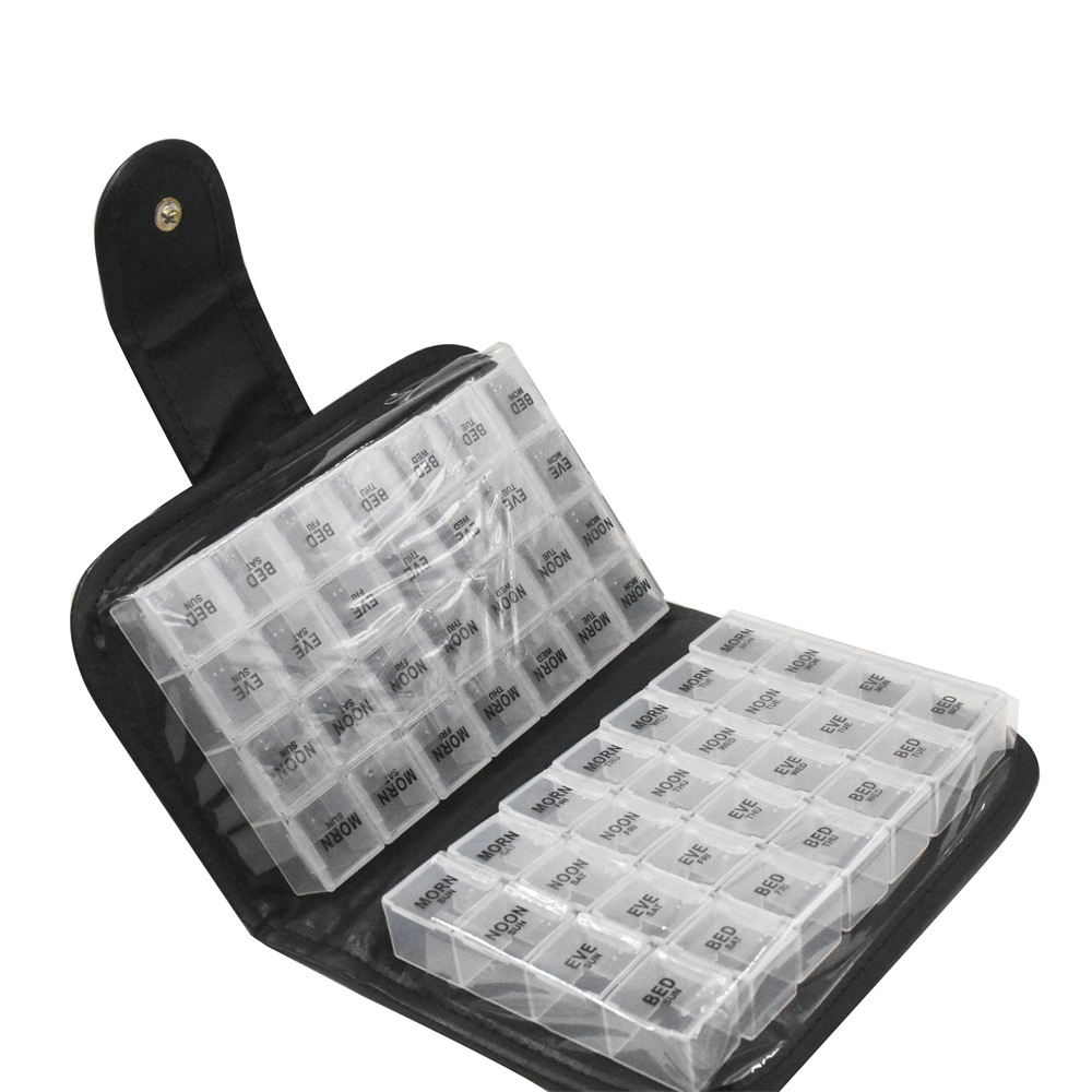 Kotak pil setelan kulit 14 hari 56 kotak penyimpanan obat tas kulit kotak pil notebook kotak pil dompet kotak pil