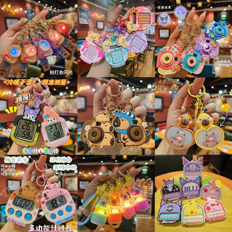 Selebriti Internet Boneka Kartun Multifungsi Lampu Flash Gantungan Kunci Kalkulator Termometer Tas Sekolah Liontin Hadiah Kecil Grosir