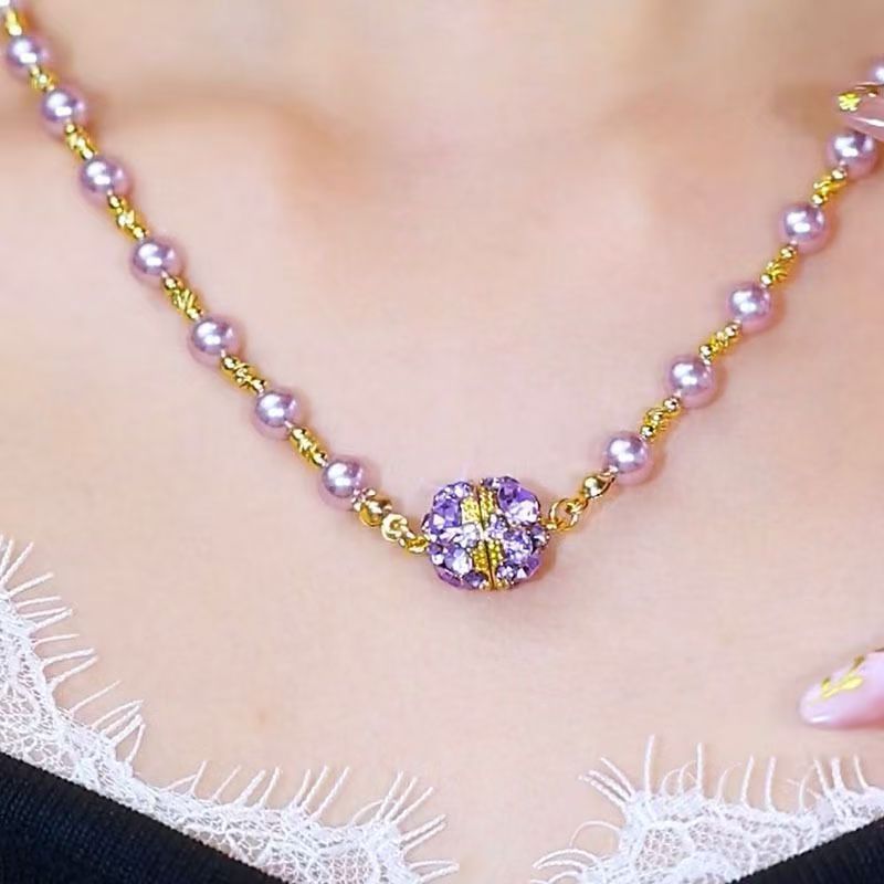 Kalung Modis Kelas Atas Kalung Manik-Manik Magnetik Mudah Dipadu Padan Kalung Berlian Magnetik Ringan Desain Tulang Klavikula Elegan Warna Ungu Niche