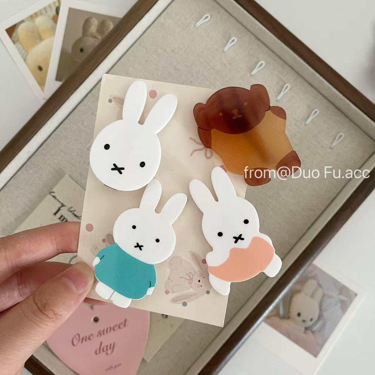 Kalline Model Korea Warna Warna-warni Miffy Kelinci Warna Biru Pink Kotak-Kotak Krim Jepit Simpul Kupu-Kupu Jepit Tepi Kancing Kupu-Kupu Jepit Bebek