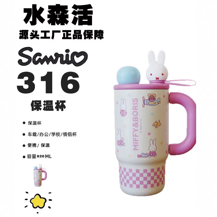 miffy冰霸杯女2025年新款高颜值卡通大容量水杯便携双饮口杯子