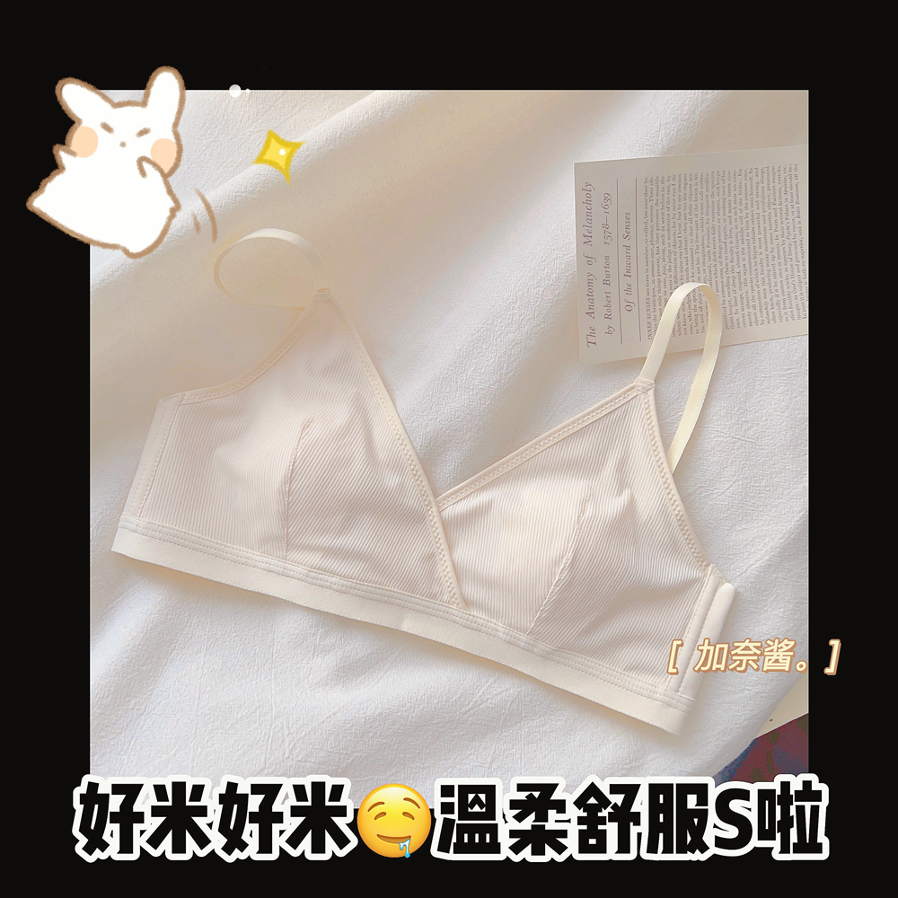Pakaian dalam wanita ultra-tipis cangkir segitiga Prancis wanita bra besar dada kecil tanpa cincin baja telinga kelinci gadis