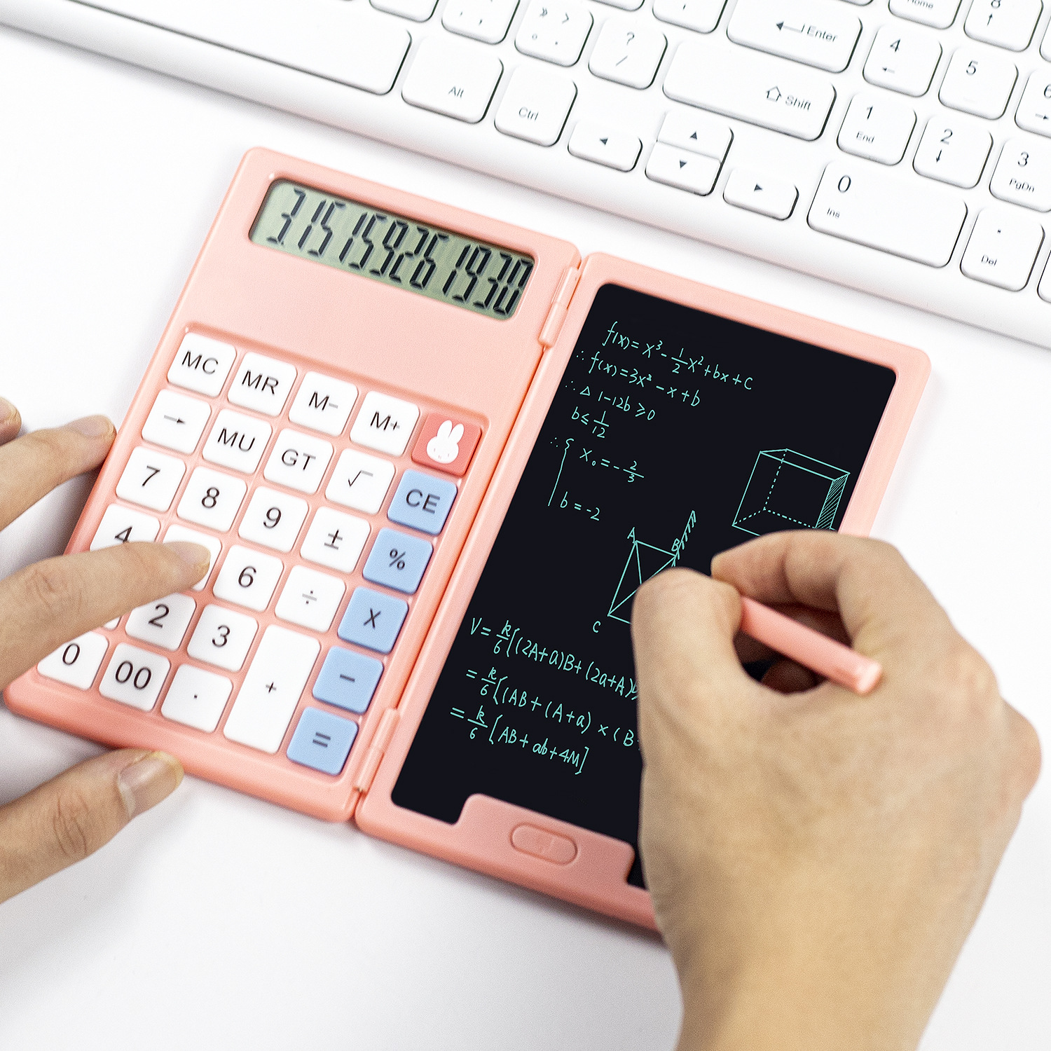 Papan tulis kalkulator imut anak-anak, papan tulis komputer portabel miffy lebar, papan tulis kalkulator tampilan tinggi, merah muda