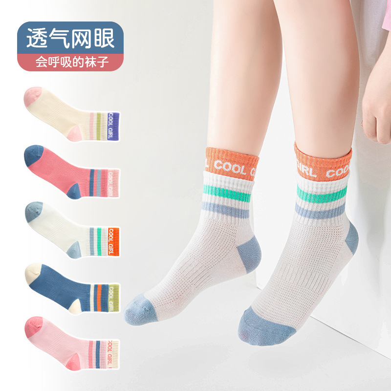 Kaus kaki jala katun tipis untuk anak perempuan, kaus kaki jaring katun tipis musim panas dan semi untuk anak-anak Perempuan ukuran sedang dan besar, kaus kaki putri musim panas untuk anak perempuan