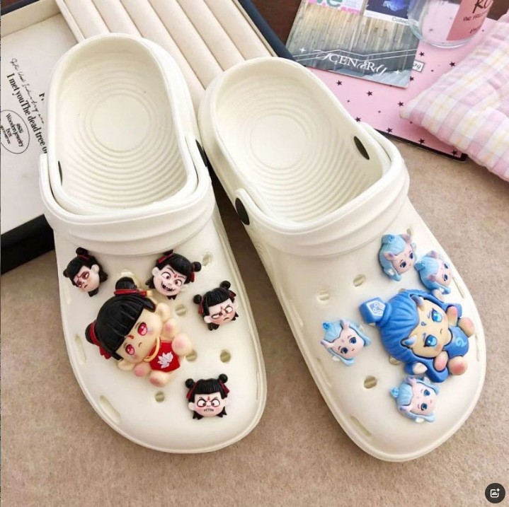 2025 Nezha CP Sepatu Bunga Kartun Tom Cat Lollipop Sepatu Lubang Luar Trendi Bunga Sepatu Baru Jalanan