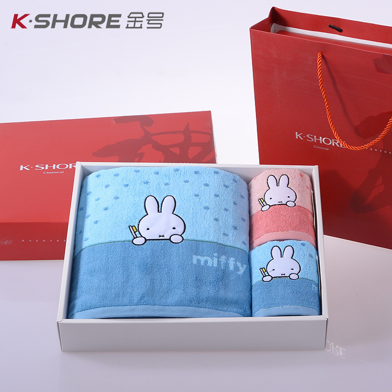 Katun emas tiga potong Miffy handuk kartun 1029 kotak hadiah tidak mendukung kembali