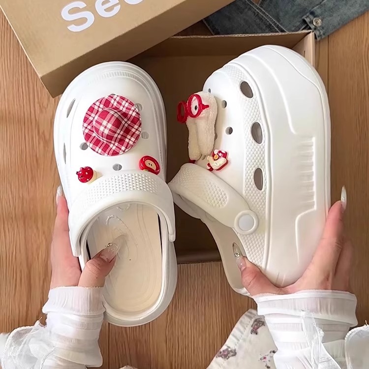 Sepatu Berlubang Tebal Sol Tebal Kartun Miki Kelinci Lucu Sandal Wanita Ujung Tertutup Nyaman Bernapas Model Baru Musim Panas 2025