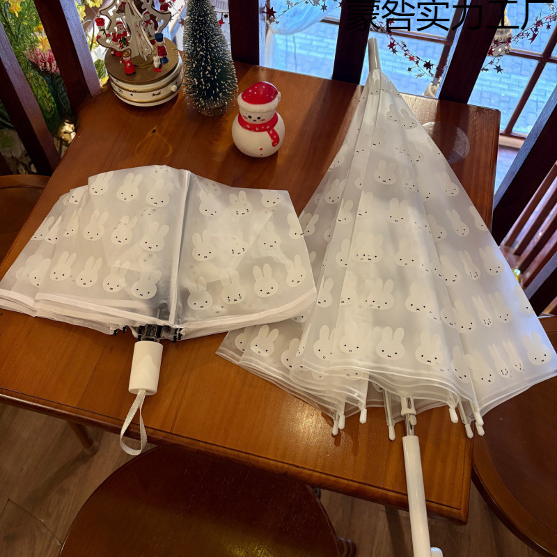Hujan Cerah Matte Payung Transparan Penggunaan Ganda Elegan Payung Lipat Payung Rumah Tangga Batang Lurus Kartun Anak Portabel Otomatis Pelajar