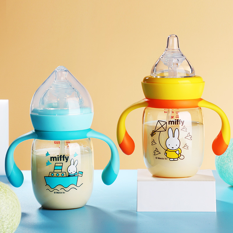 MIFFY botol susu susu PPSU bayi, ikat pinggang tiup tahan jatuh, pegangan cangkir jerami untuk memberi makan dan menyapih