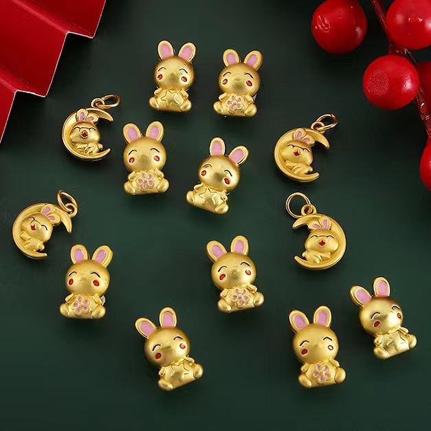 Aksesori perhiasan baru liontin kelinci telinga ganda minyak tetes Kelinci matte Miffy gelang kalung DIY tali merah campuran seng