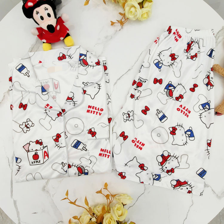 Piyama lengan pendek wanita, musim panas Asia Tenggara celana pendek kartun lucu susu sutra kardigan setelan baru pakaian rumah Thai