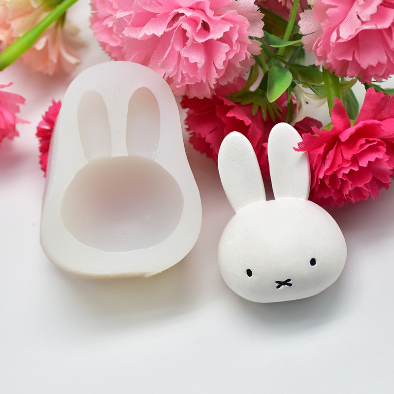 Cetakan silikon epoksi cokelat Fondant tanah liat, dekorasi kue kepala kelinci Miffy