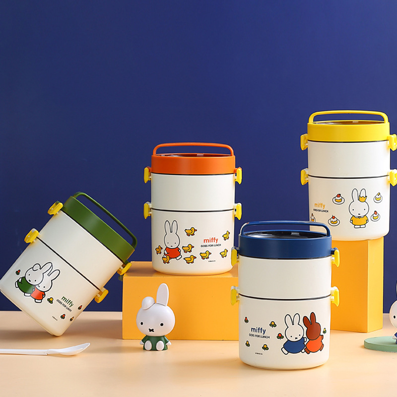 Miffy kotak makan siang kartun tiga atau empat kisi, kotak makan siang lucu untuk kantor dan dewasa
