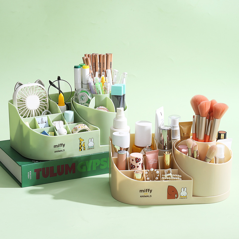 Miffy kotak penyimpanan kosmetik berputar, tempat pena meja rias kotak kosmetik desktop perawatan kulit miffy
