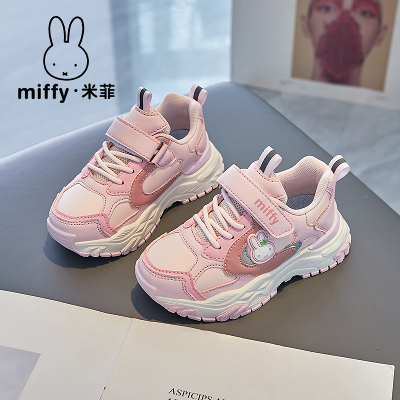 Miffy sepatu lari anak-anak, sneaker kasual Semua cocok untuk anak perempuan musim semi musim panas, sepatu lari baru Velcro modis