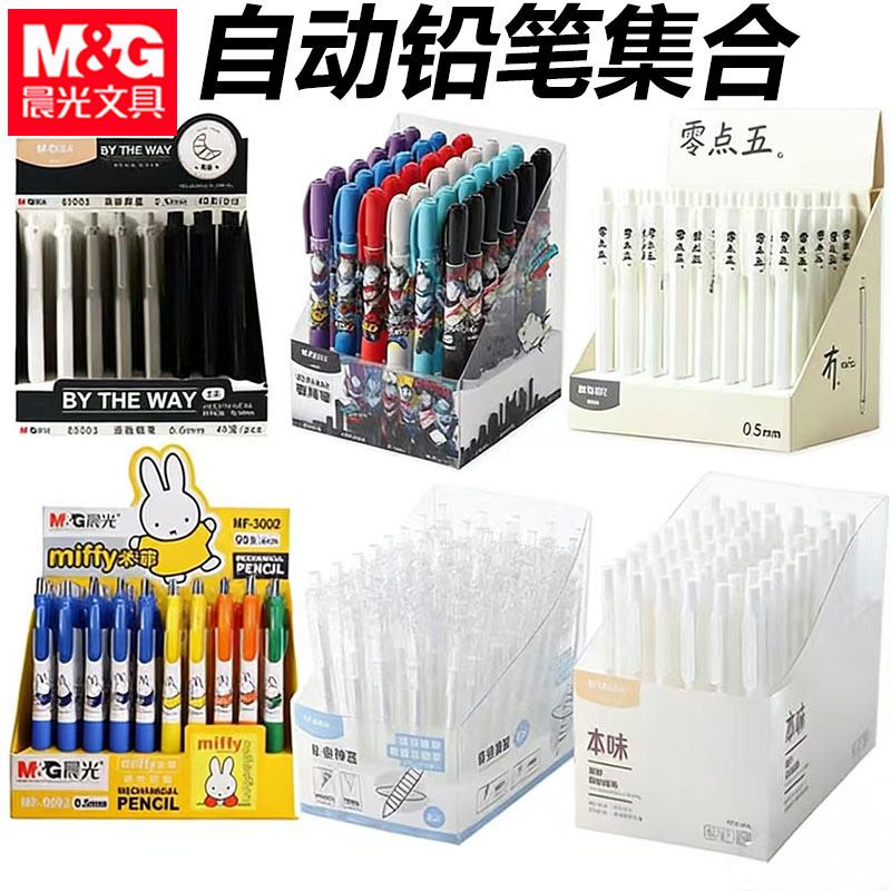Pensil otomatis AMPU4503 dengan badan matte, pensil mekanik untuk pelajar, pensil Miffy 0.5mm, pensil retractable 0.7mm.