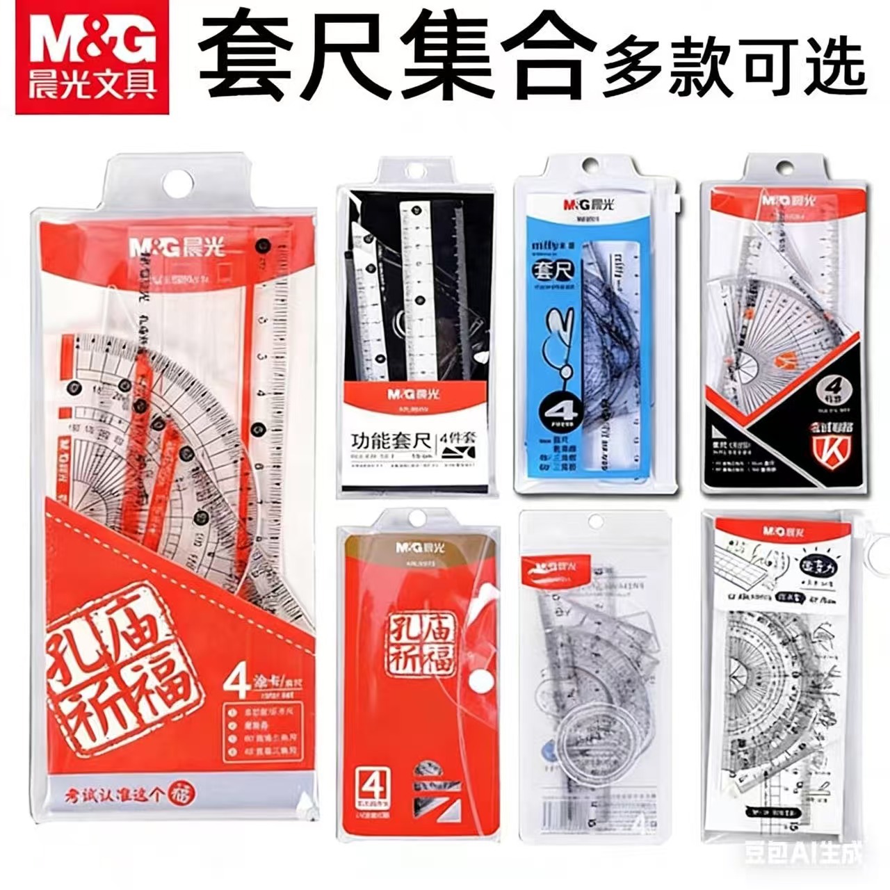 晨MG光米菲套尺带波浪线考试用绘画测量工具尺直尺三角板量角器刻