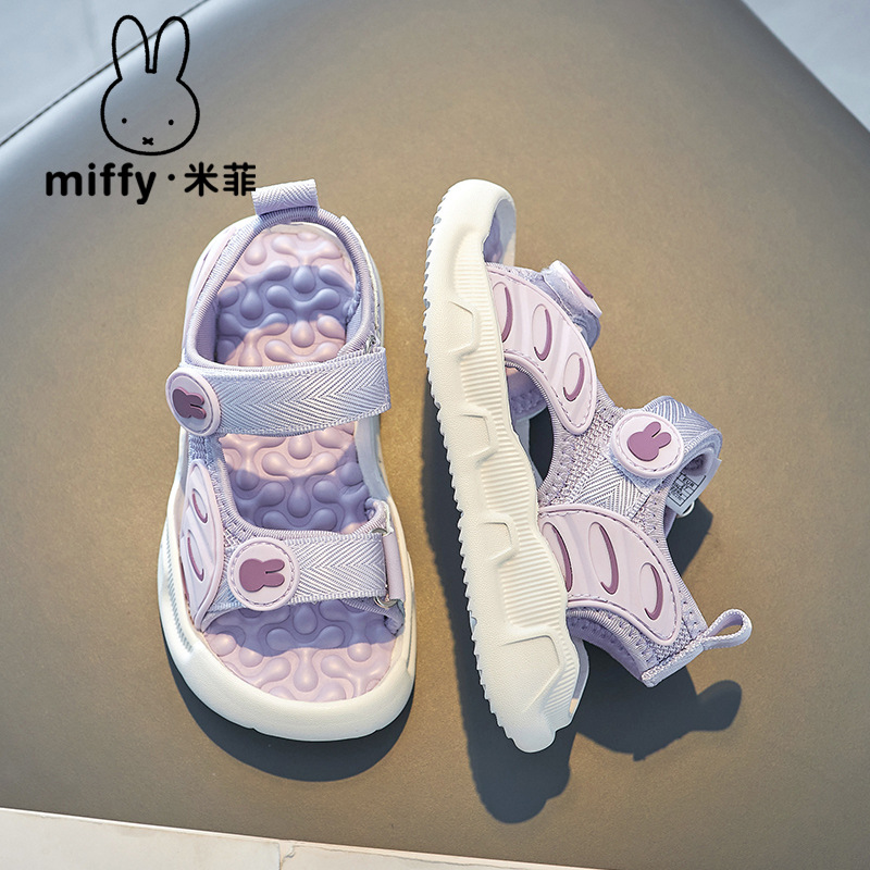 [Ukuran 23-28] Sepatu Anak-anak Miffy Miffy Sandal Kasual Anak Perempuan Musim Panas Sandal Ujung Tertutup Jaring Gaya Barat