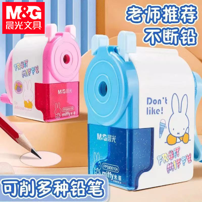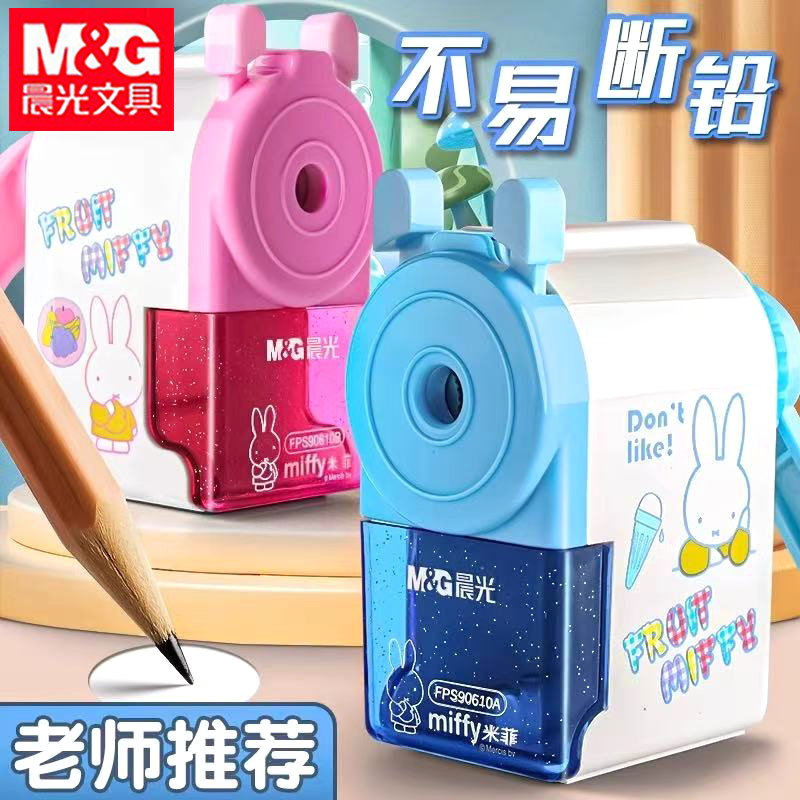 Pengasah pensil Miffy FPS90610 untuk siswa sekolah dasar, pengasah pensil putar manual yang mudah digunakan, pengasah pensil kantor yang lucu.