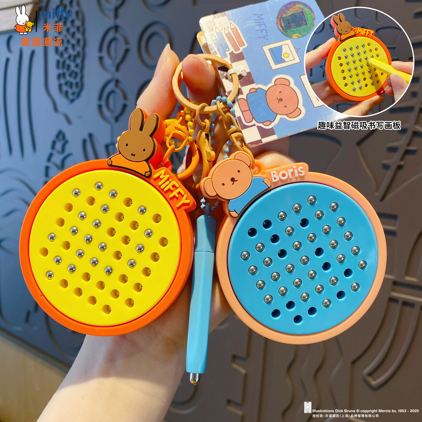 Papan gambar magnetik kelinci Miffy asli, gantungan kunci penghilang stres, kreatif, dapat dihapus, liontin ransel siswa