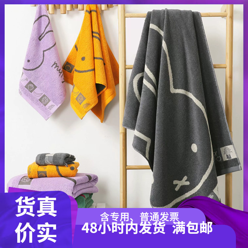 Handuk katun murni yang menyerap air, model kolaborasi Miffy MFT1101, handuk kecil bergambar kartun 60*30, tersedia dropshipping.