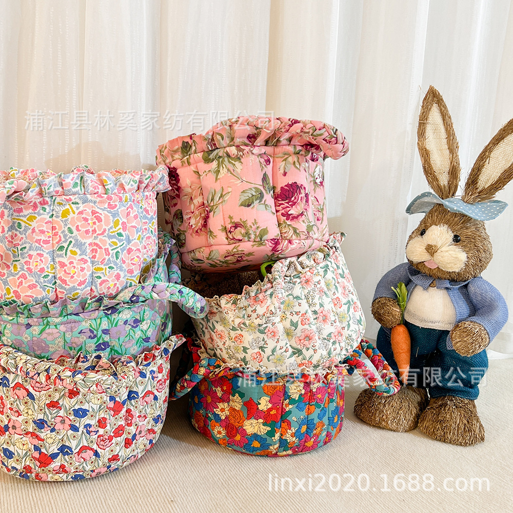Keranjang penyimpanan kain pastoral rumah Korea Selatan keranjang penyimpanan kosmetik mainan serba-serbi keranjang penyimpanan pakaian dalam motif bunga lucu