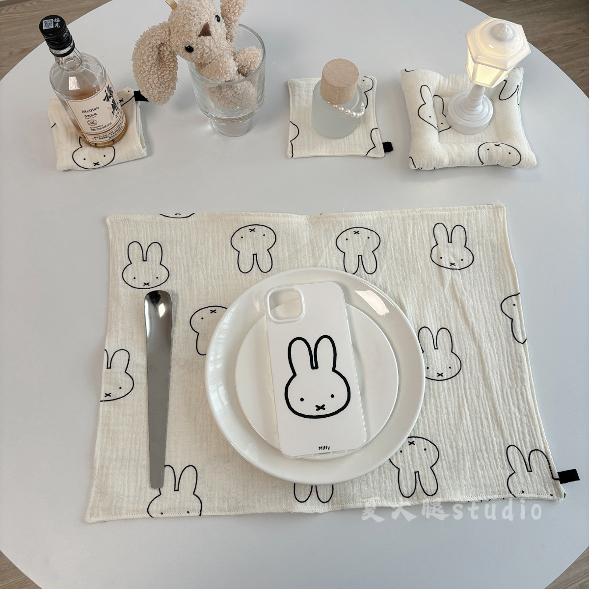 Alas Makan Benang Katun Murni Kelinci Mifi Gaya Jepang Gaya Instagram yang ramah kulit Alas Meja Handuk Rumah Tangga Alas Isolasi Panas Bisa Dicuci dengan Air