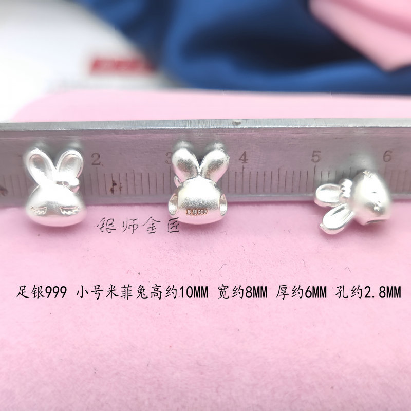 Aksesori kelinci telinga besar perak keras 3D gelang kelinci Silver murni 999 Miffy gelang perak murni aksesori gelang manik-manik potongan tali