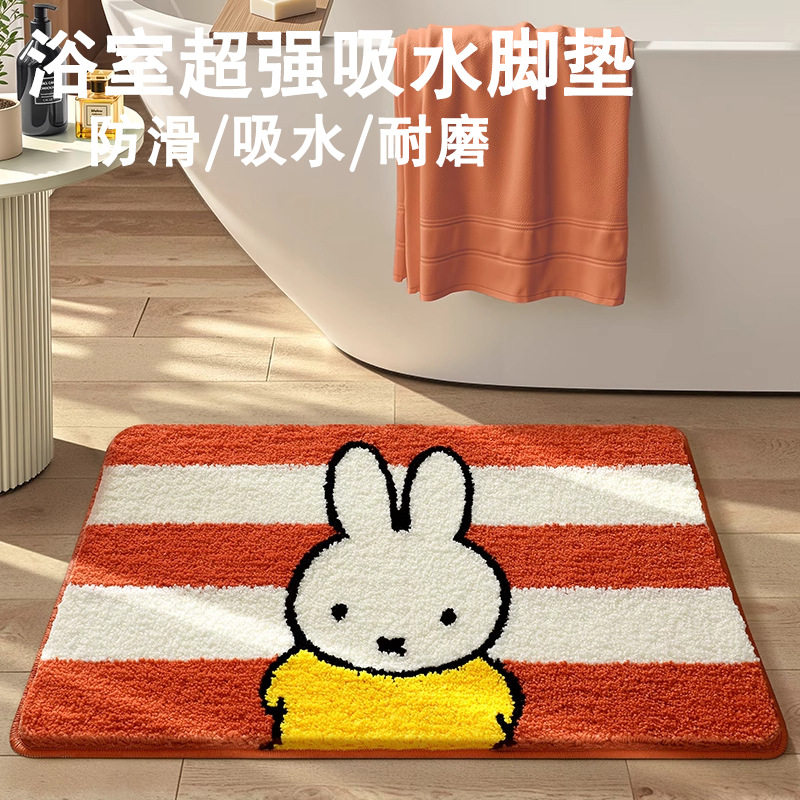 跨境卡通风植绒地毯卫浴吸水进门地垫厂家直销卫生间脚垫浴室门垫