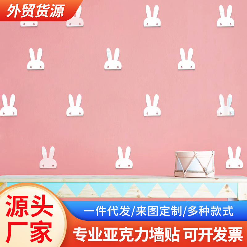 Stiker dinding akrilik kartun Miffy, stiker cermin dekorasi kamar tidur, stiker 3d akrilik kelinci