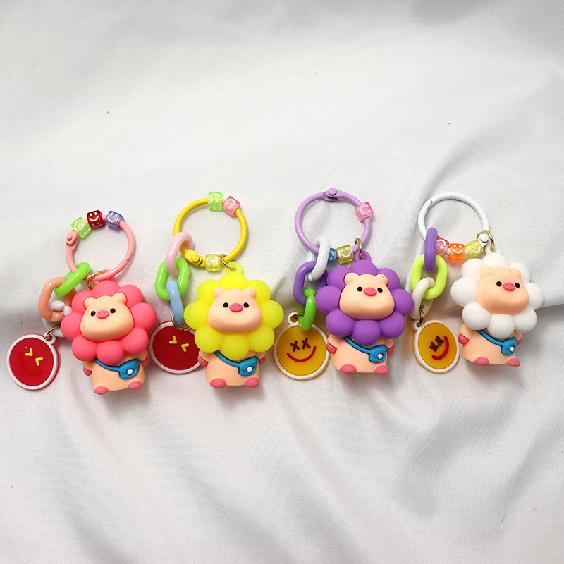 Gantungan Kunci Babi Bunga Matahari Gantungan Gantungan Boneka PVC Lembut Hadiah Kecil Boneka Kartun Instagram Mobil Lucu