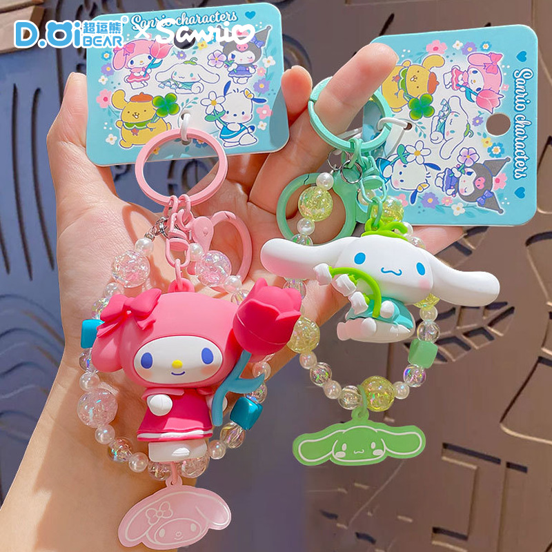Rantai Mutiara Merah Muda Abu-abu Sanrio Asli Model Baru 2024 Gantungan Kunci Mobil Aksesori Tas Indah Wanita