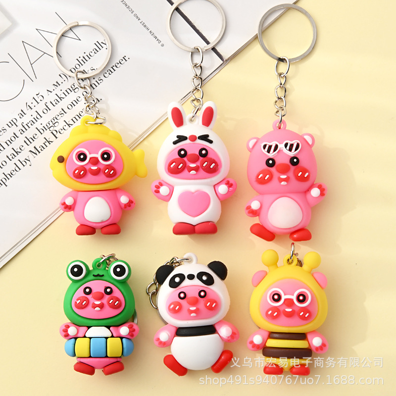 Gantungan Kunci Babi Bunga Matahari Gantungan Gantungan Boneka PVC Lembut Hadiah Kecil Boneka Kartun Instagram Mobil Lucu