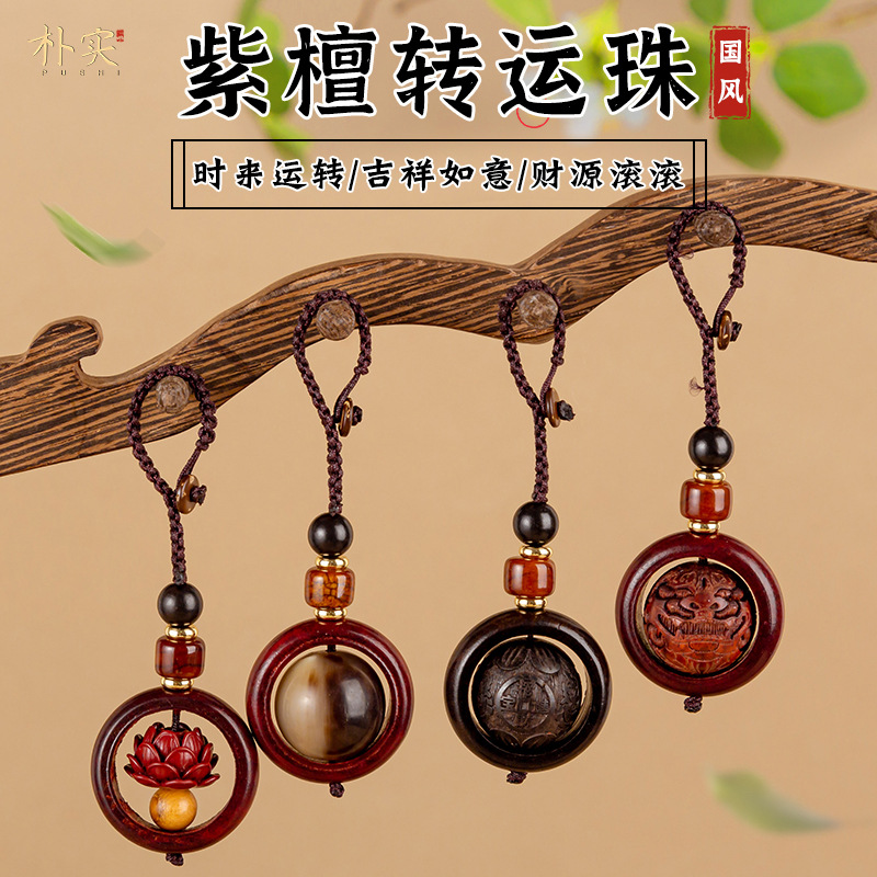 Eywood Rantai Gantungan Kunci Mobil Manik Keberuntungan Gantungan Kunci Tas Pria Wanita Aksesori Gantungan Unik Kreatif Kayu Ebony