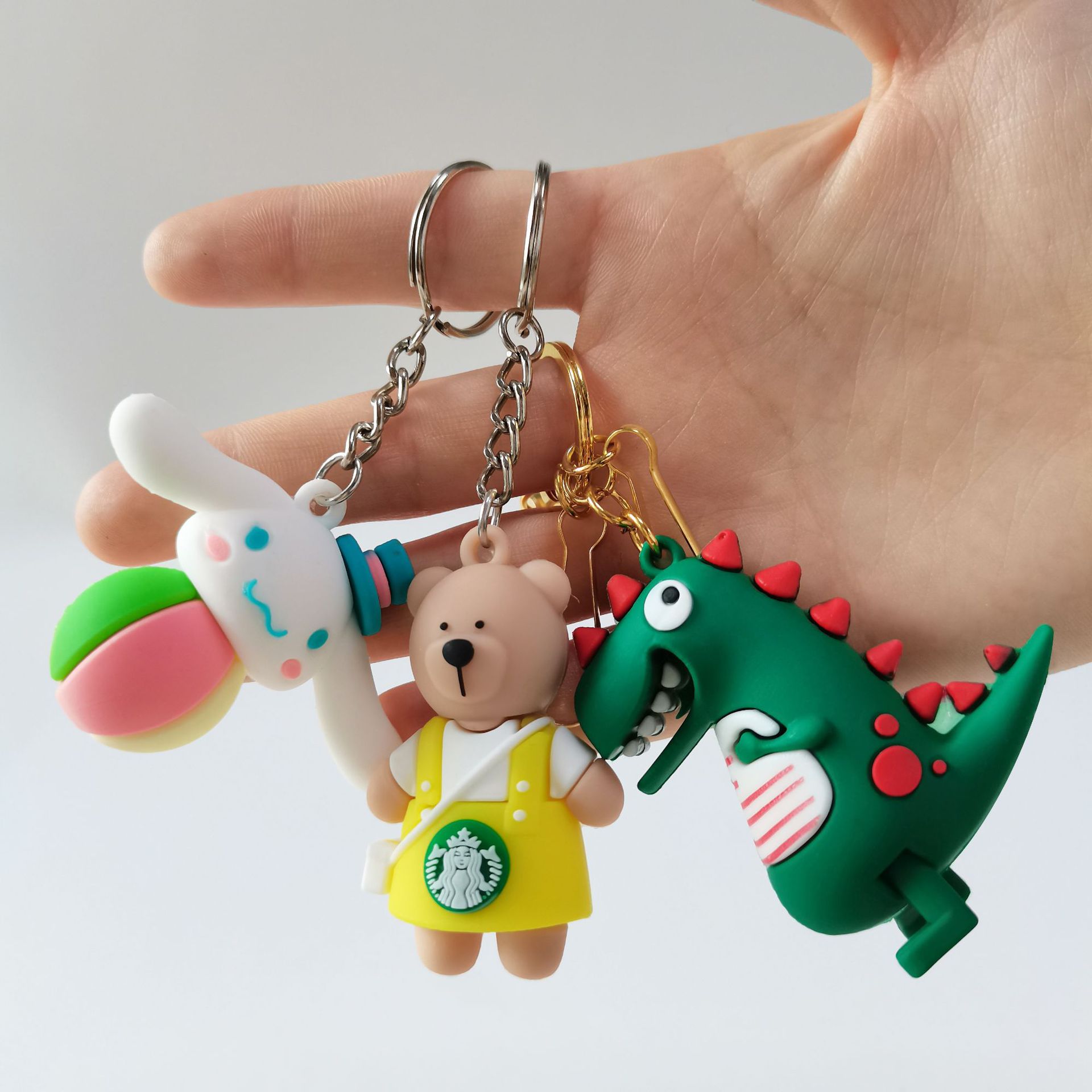 Liontin gantungan kunci mobil, kartun dinosaurus gantungan kunci cincin tiga dimensi boneka hadiah lucu aksesoris bagasi grosir