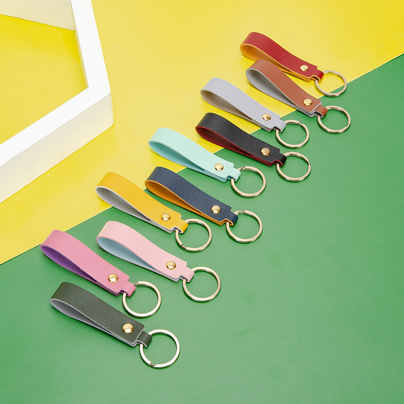 Gantungan kunci mobil gaya Nordic, gantungan kunci kreatif dua warna kulit PU, gantungan kunci mobil, tali tas liontin
