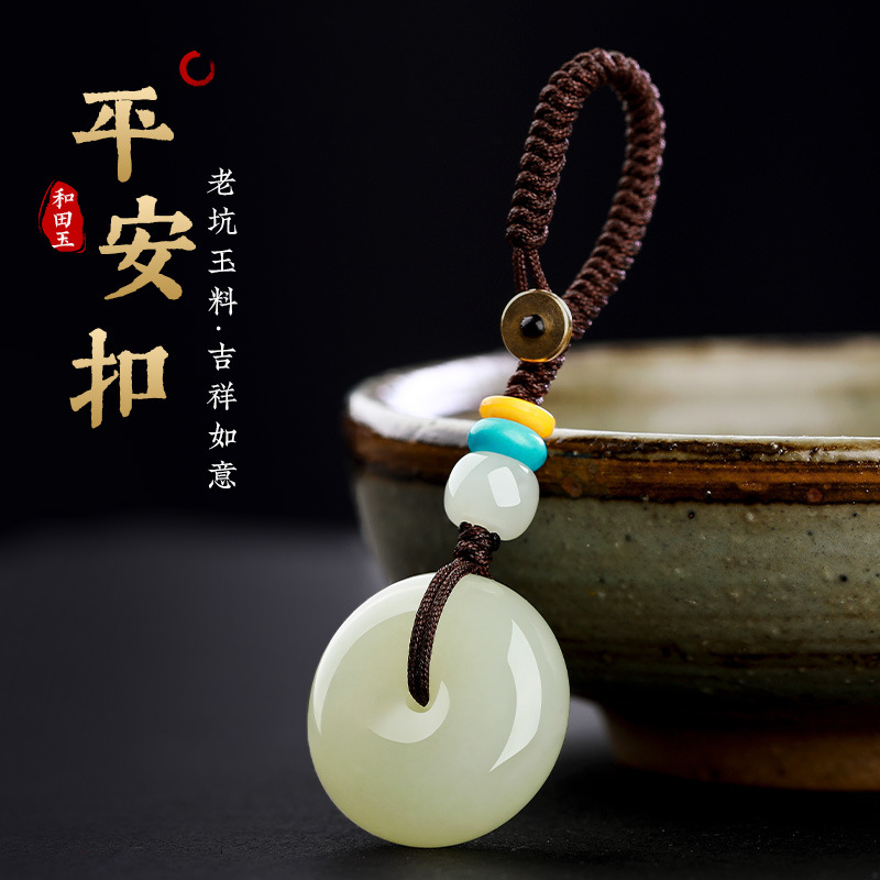 Liontin kunci giok kualitas tinggi, gantungan kunci mobil gesper keamanan giok Hetian jade liontin pria dan wanita