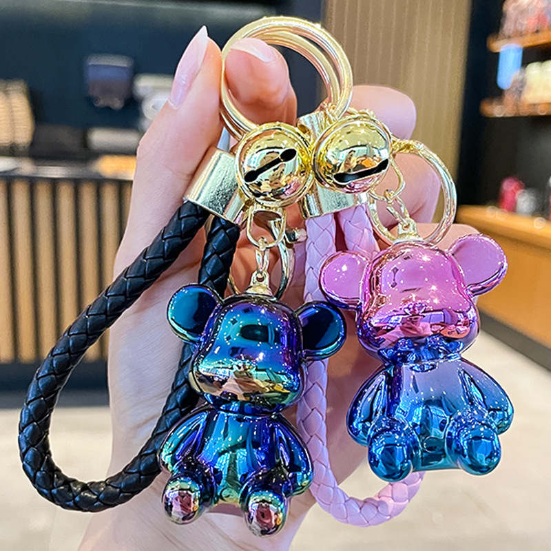 Gantungan Kunci kartun boneka beruang kekerasan warna-warni gantungan kunci wanita indah kualitas tinggi gantungan kunci mobil tas sekolah liontin kecil